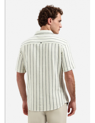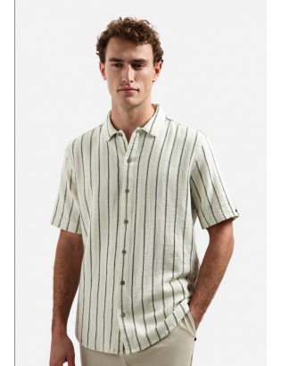 Pièce phare du vestiaire printemps-été, découvrez "PALM BEACH" la chemise manches courtes rayée signée #noexcess. On aime sa confection légère & respirante, ajoutée à un effet maille discret. Elle est parfaite pour l'été. Facile à combiner avec un chino, un short ou un jean léger.