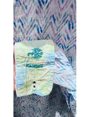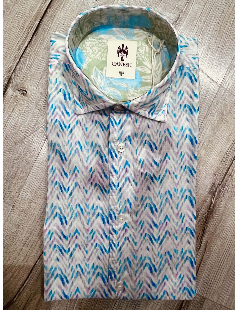 Vos préférées de l'été sont de retour ! Découvrez ou redécouvrez les chemises légères & originales signées #GANESH. Vous allez adorer le modèle "FLOW". Déclinée en coloris : Watercolor Zig zag, pour styliser tous vos looks de saison. On aime son côté fluide & léger, son motif original & coloré & le détail iconique de la marque : le retour de manche brodé & imprimé Ganesh.