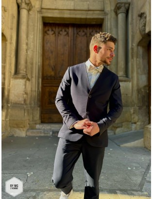 Distinguez vous avec style grâce a notre veste de costume sans col "WILEY DESIGN" signée #IMPERIAL. Avec sa coupe cintrée et son design hyper original, cette pièce en bleu marine est un incontournable pour les hommes élégants et audacieux. Soyez prêt pour toute occasion !