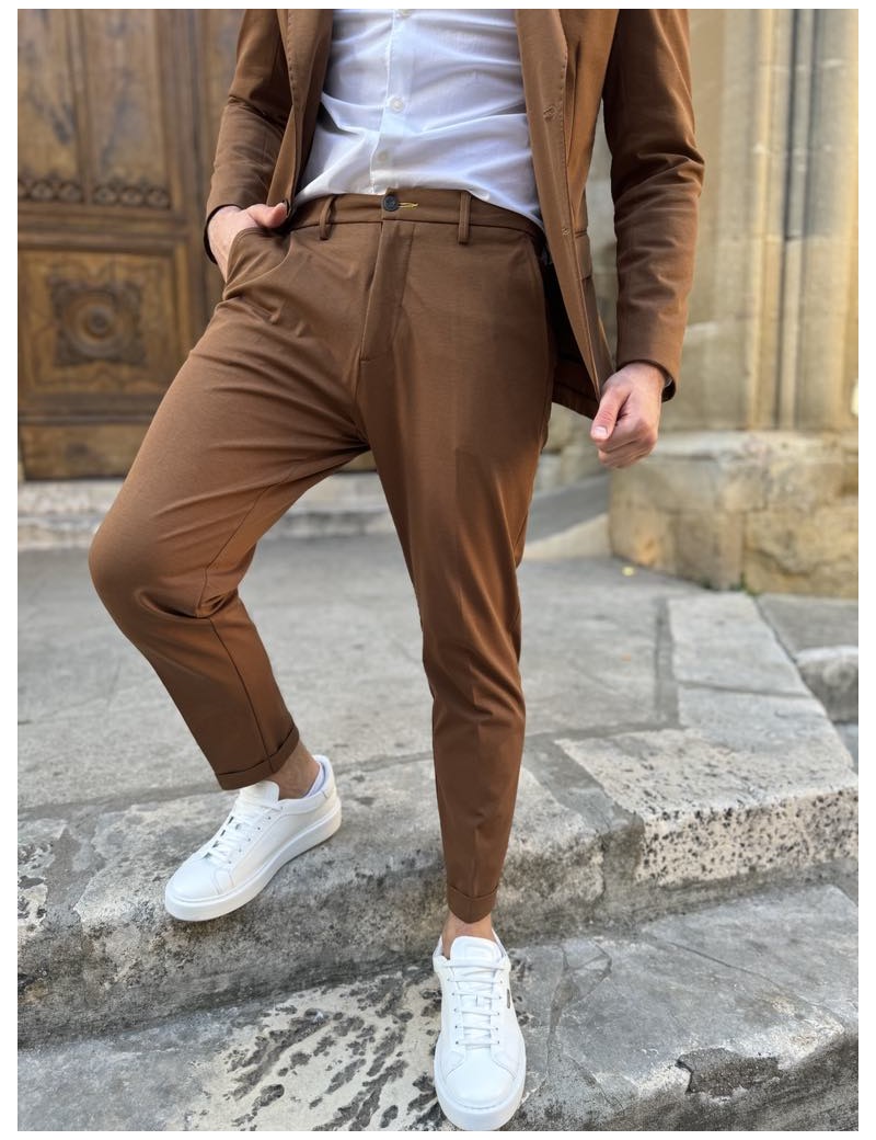 Associez modernité & élégance avec le costume "LONG BEACH" signé #imperial. On aime sa couleur chaude parfaite pour la saison. Coupe slim & 7/8e (plus court en bas). Associez le au blazer Long beach pour un total look.