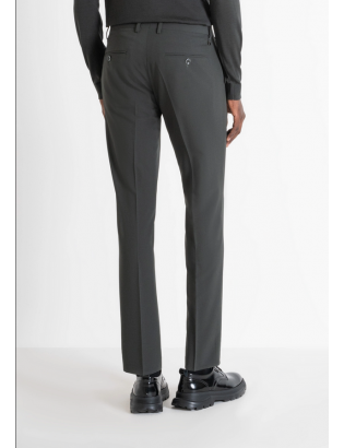 Découvrez "BONNIE" le pantalon essentiel et élégant réalisé en viscose mélangée élastique. #AntonyMorato le propose dans une couleur unie avec une coupe ajustée. Le design du vêtement est doté d’un rabat muni d’une fermeture zippée et d’un bouton dissimulés et de quatre poches, deux passepoilées avec bouton apparent au dos et deux à l’américaine sur les côtés. La plaque métallique sur le passant complète le modèle. Associez le pantalon au blazer BONNIE pour un total look classy.
