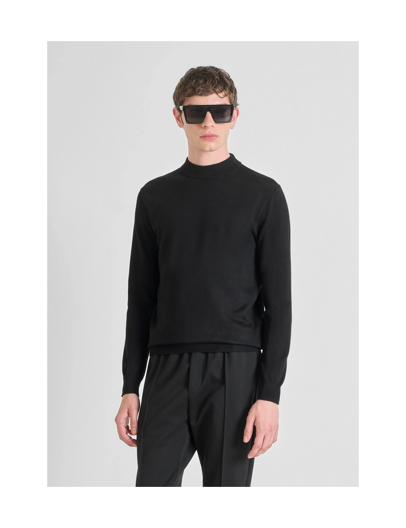 Le pull "ANTHONY" à col rond semi montant en fil doux de viscose mélangée présente une coupe confortable. Le col, le bas et les poignets côtelés et la plaquette en métal logotypée appliquée dans le dos complètent le modèle. Un vêtement raffiné, parfait à ajouter à vos looks d’hiver.