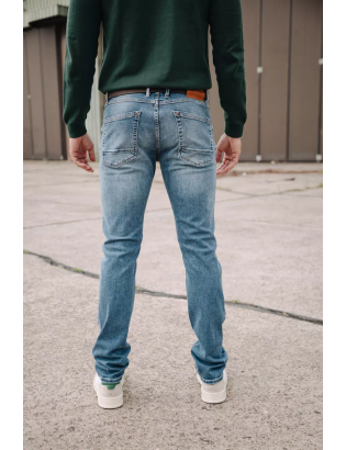Retrouvez l'iconique jean "JIMMY" signé #freemantporter cette saison en couleur SAOPOLO. Coupe droite ajustée. Classique 5 poches. Matière super stretch ultra confort. Délavage bleu foncé, usé, esprit authentique.