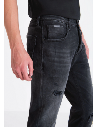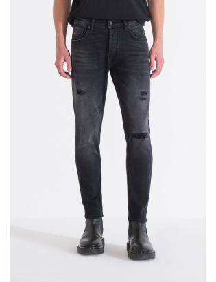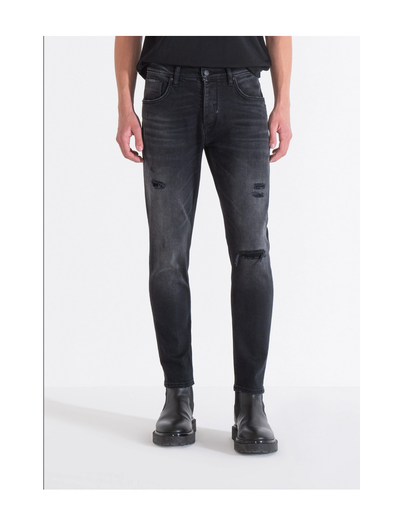 Découvrez "ARGON" le jean slim griffé signé #AntonyMorato. Confectionné entièrement en coton légèrement stretch avec un délavage foncé, ce jean à cinq poches présente un design longueur cheville, caractérisé par l’effet de délavé avec des moustaches et des abrasions localisées. La fermeture avec boutons apparents et la plaquette avec logo sur la petite poche complètent le modèle, parfait pour donner vie à des looks street-style impeccables.