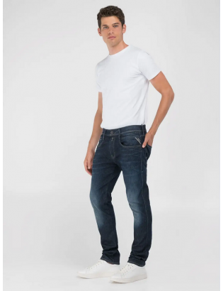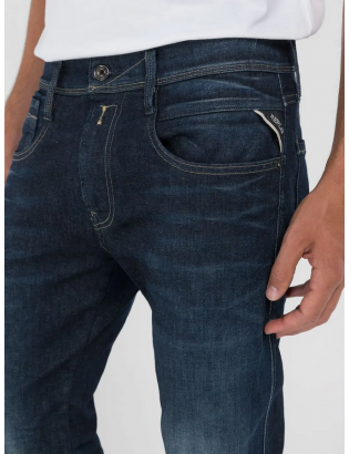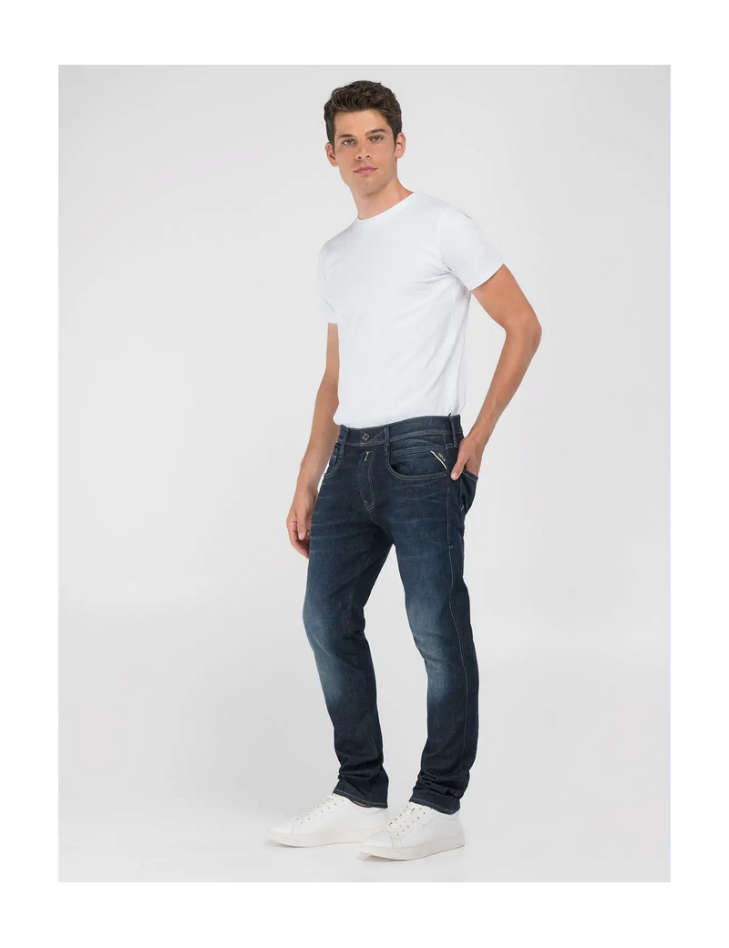 Cette saison, découvrez "ANBASS" le nouveau denim signé #replay. Jean slim doté d'une taille regular et de jambes souples s'affinant vers le bas pour une coupe confortable. Ce modèle est fabriqué en denim de coton mélangé stretch Hyperflex, pour un confort maximum. Cinq poches avec effet de résinage. Micro abrasions pour un look plus urbain. La couture emblématique en aile de mouette orne la cinquième poche et les poches arrière. Fermeture par bouton et glissière.