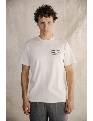 Découvrez la nouveauté #freeman. Le t-shirt "CHUCK HAPPY WIFE" en col rond, parfait pour cet été. On aime son imprimé poitrine Happy Wife Happy Life, un bon mood pour la saison estivale.