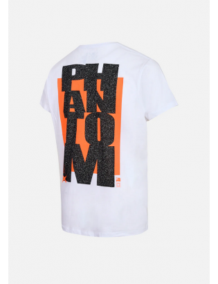 -T-shirt col rond à bord côtes, coupe droite, manches droites pour une finition soignée et structurée. Sérigraphie sur le devant, au niveau du plexus, pour une signature visuelle unique. Grande sérigraphie au dos du logo Phantom, créant un effet audacieux et moderne. Matière respirante naturellement, traitée pour offrir un antibactérien naturel grâce à la présence du coton dans la composition du tissu