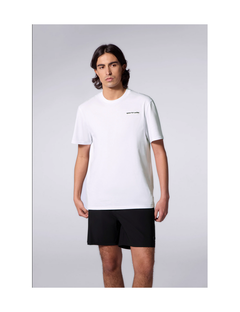 Le T-shirt "LEONCE CYPHER" by #gertrude propose une silhouette droite unisexe, pensée pour un usage quotidien confortable. Il offre un toucher doux et une bonne respirabilité grâce à sa matière naturelle. Un logo de la marque imprimé de manière contrastée est positionné sur la poitrine, tandis qu’un graphisme marqué occupe le dos pour une présence visuelle affirmée. Un logo iconique en silicone ton sur ton, placé en bas devant, vient compléter l’ensemble avec une signature discrète.