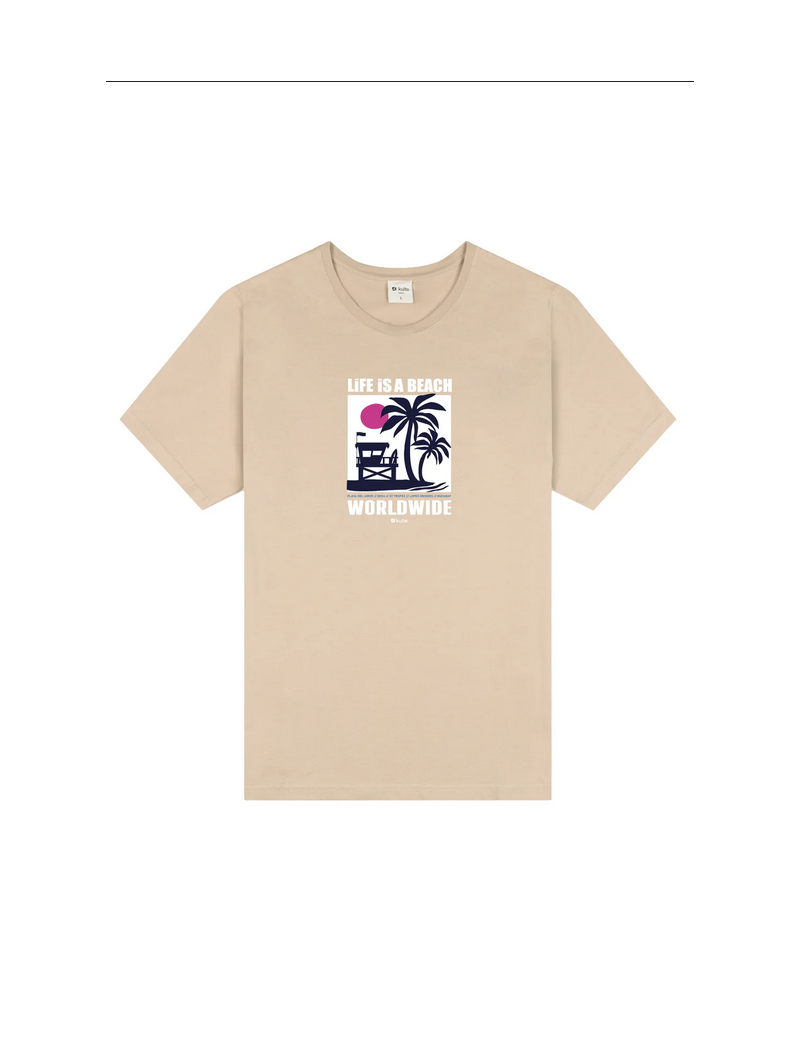 La vie est plus belle face à l’océan! Le t-shirt "Worldwide" by #kulte célèbre les destinations mythiques et l’esprit été permanent. Son visuel graphique associe palmier, lifeguard tower et coucher de soleil dans une esthétique rétro inspirée des plages iconiques comme Ibiza, Saint-Tropez ou Mayabay.